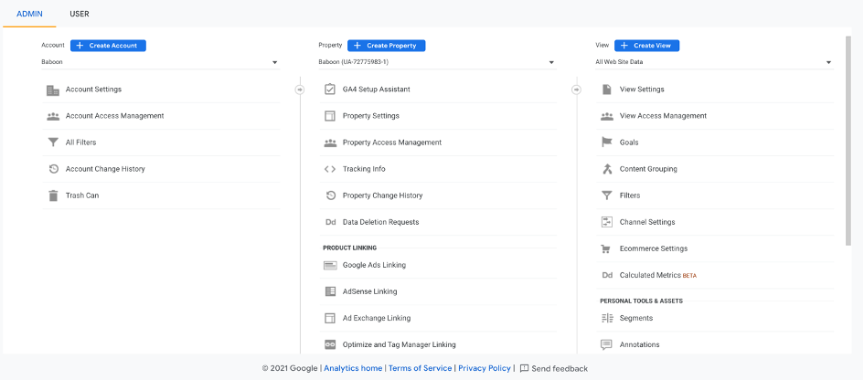 Dacă deja ai acces în alt cont de Analytics și dorești să realizezi unul nou atunci trebuie să dai click pe Admin – Realizare cont nou.