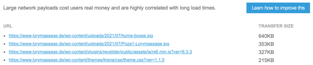 În cazul de față în cele mai multe cazuri ai anumite poze care nu sunt optimizate pentru web. Pozele ar trebui să fie reduse la o mărime potrivită cu cât ocupă din ecran și să fie rulate printr-un instrument de optimizare web. Cel mai bun instrument pe care îl folosesc și eu este TinyPNG – pur și simplu tragi imaginile în browser, iar apoi le descarci optimizate. Este atât de simplu.