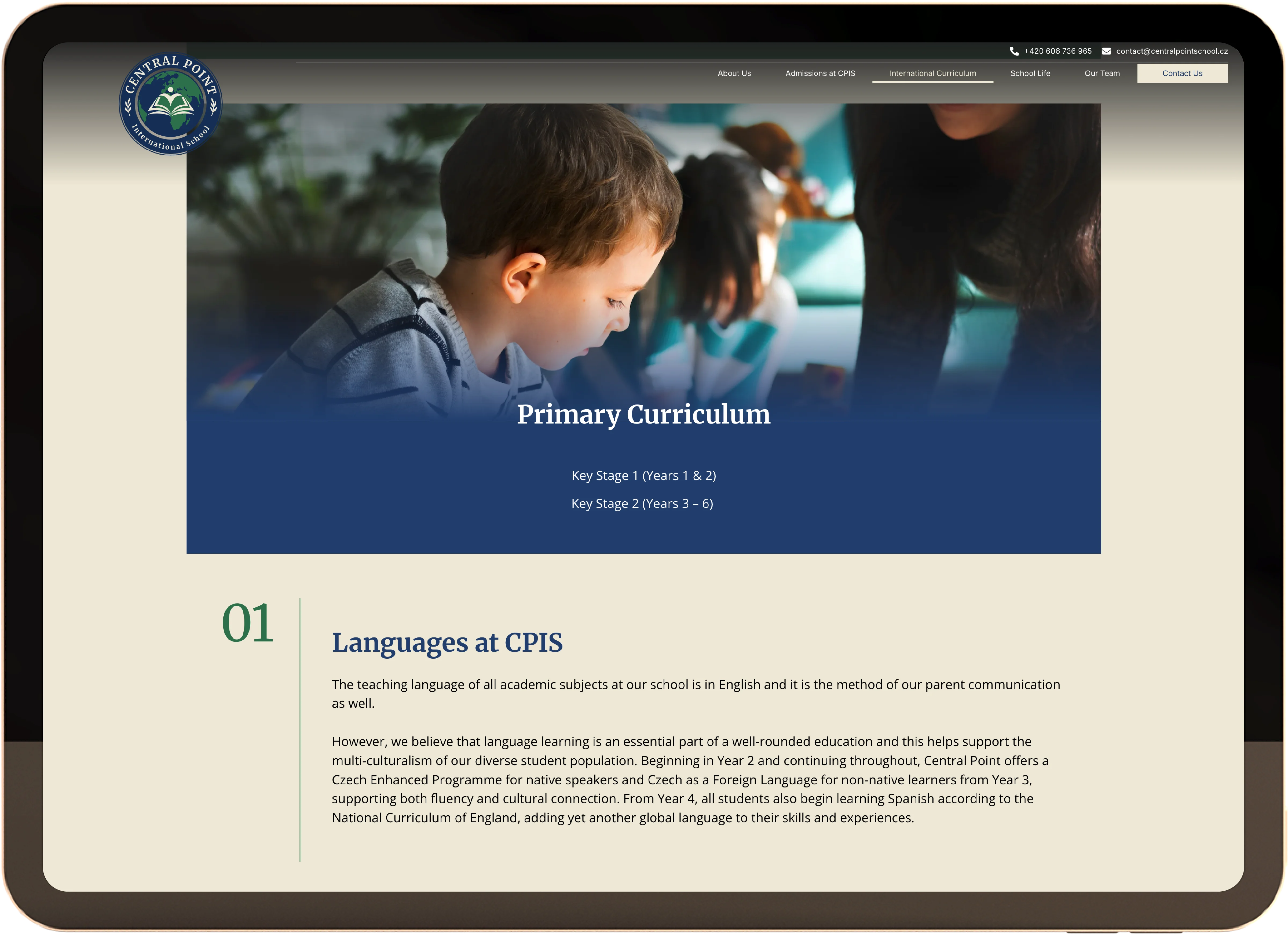 Noua versiune a site-ului centralpointschool.cz a fost concepută pentru a oferi o experiență de navigare intuitivă și elegantă, menită să servească atât părinților aflați în procesul de admitere, cât și comunității deja existente.