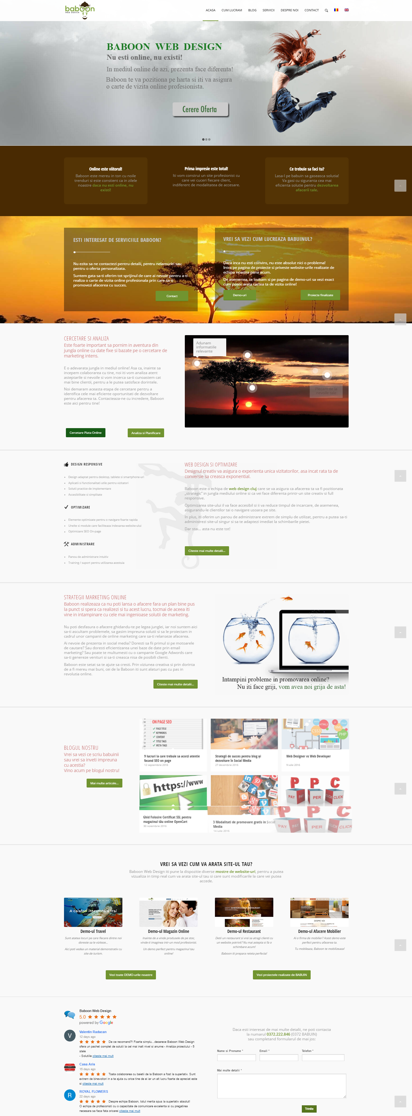 Iată cum arată HOMEPAGE-ul Baboon (care este un site de prezentare)