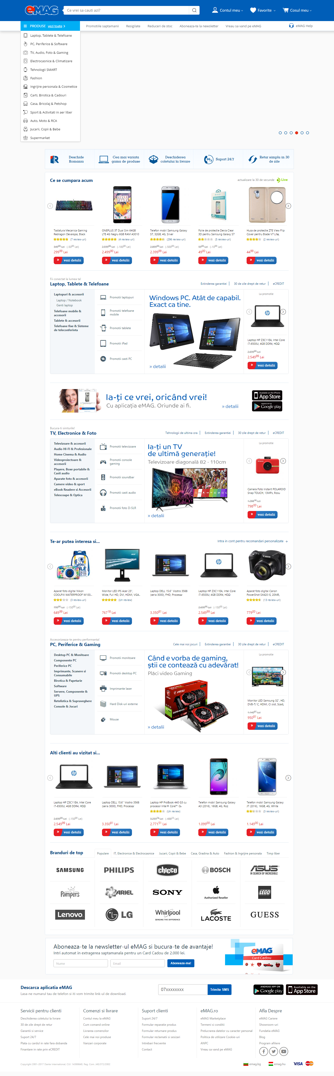 Pe un magazin online, în afară de slider, care se realizează pe același principiu ca sliderul de prezentare, textul poate lipsi cu desăvârșire. De ce? Pentru că prima pagină a unui magazin online este de cele mai multe ori catalogul cu produse.
